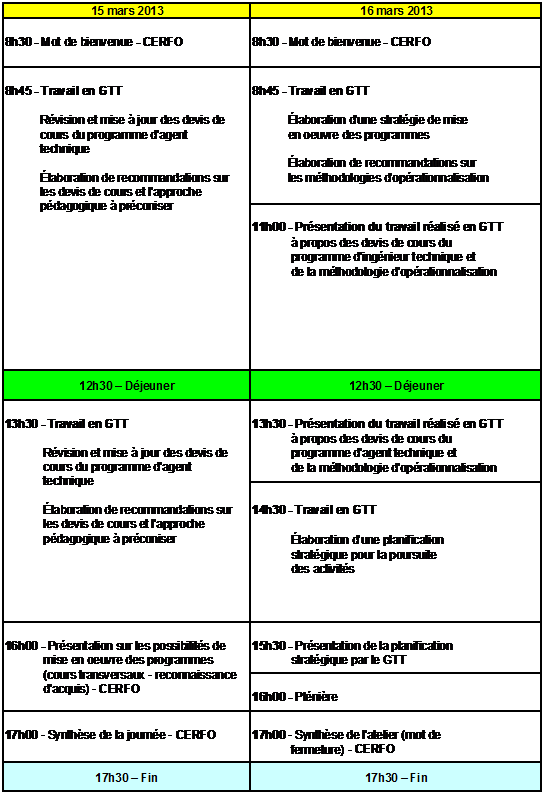 L’atelier durera 5 jours. Les travaux se dérouleront conformément au programme de travail suivant : programme prévisionnel programme prévisionnel (suite)